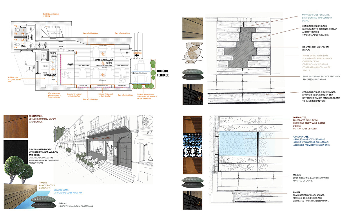 Concept sketches for a restaurant refurbishment in Mayfair,London.