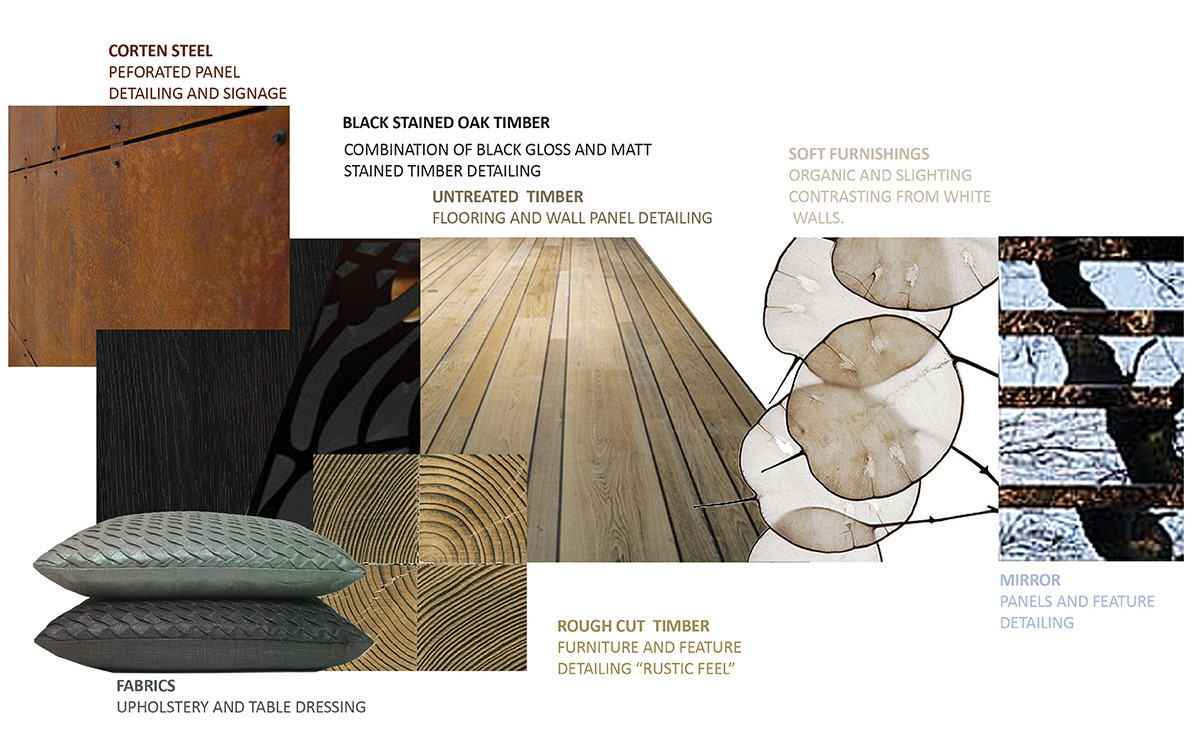 Materiality concept palette for a restaurant refurbishment in Mayfair, London