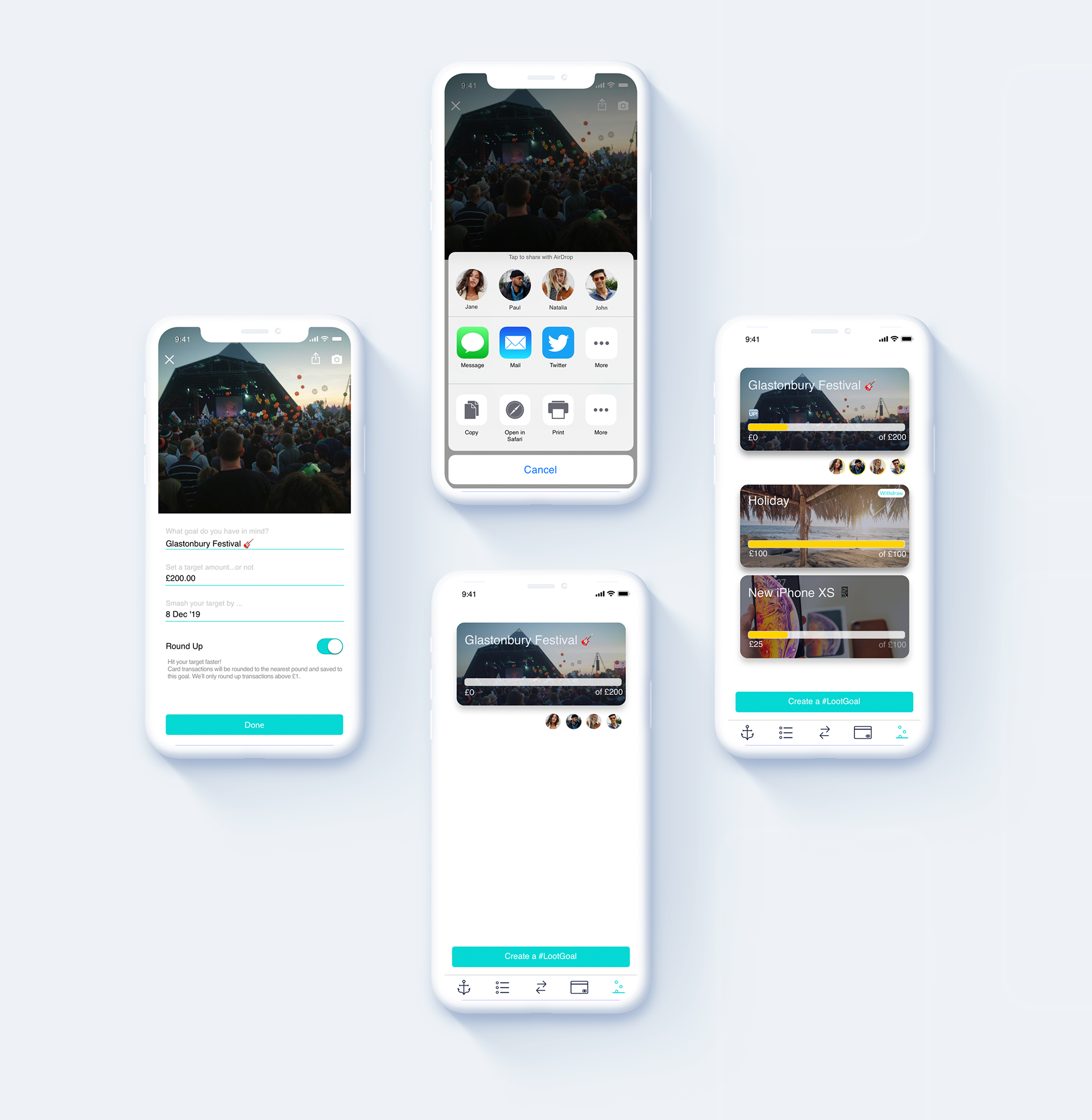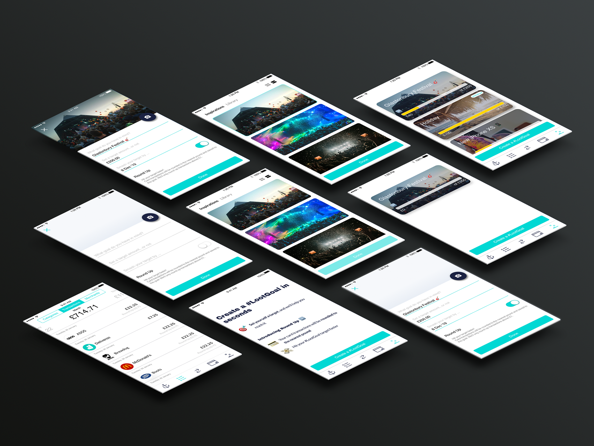 The UI maintained a lot of the our existing component and styling. During the early ideation sessions, a conversation started on how to make the feature more sociable. We then started to explore ‘shared’ goals, where by a goal could be shared and tracked amongst friends. This proved to be in favour when floated to users during early testing of the MVP Round Up feature.